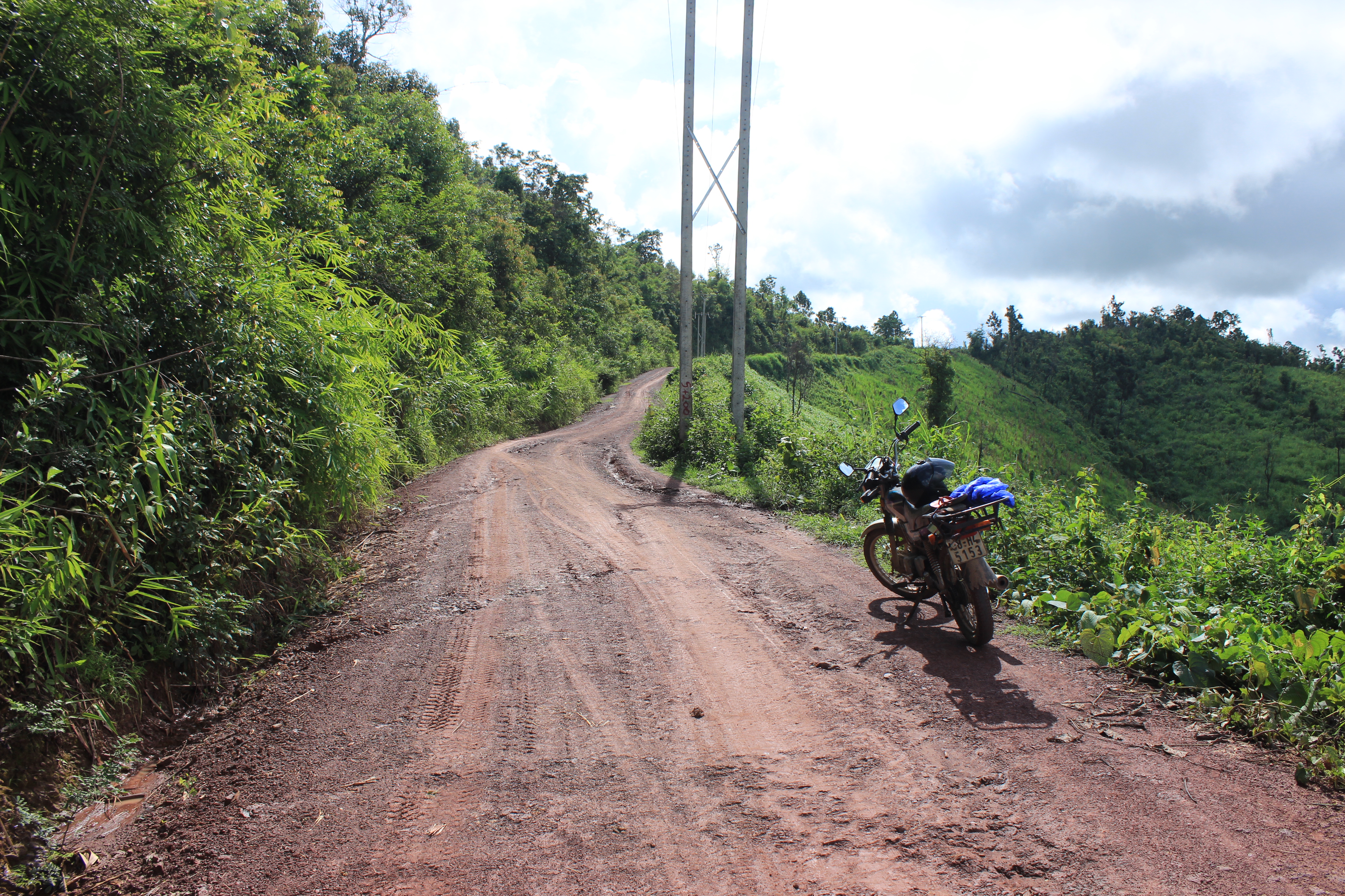 Initially, when unsure if I should go for it, I told myself – “Why listen to fear, why bail out if I’m unsure where the road leads as is my tendency, why not just go for it?” I knew the chances were that it could rain, I could get stuck, I could have an accident, the bike could break down… any one of those outcomes were legitimate concerns. And boy was it indeed treacherous – a road meant more for a dirt bike or four wheeler or 4×4 rather than an old 100cc Honda Win. I bumped and wound and crawled my way, slow km by slow km. At times I wondered what the heck I was doing. I just kept praying, hoping I would make it safely. My poor bike took a beating, but she held up. There was every sort of creak and rattle and noise imaginable to the ears. The first 1/2 to 1/3 of the journey was the worst, as I was high in the mountains and there was no straight run to bring relief. I passed communities that were too small to call villages, with a few bamboo and straw houses clustered together. I was given one curious stare after the other by locals riding and walking, probably thinking, “What in the world is this foreigner doing driving on this road?” I was thinking the same thing at certain moments.