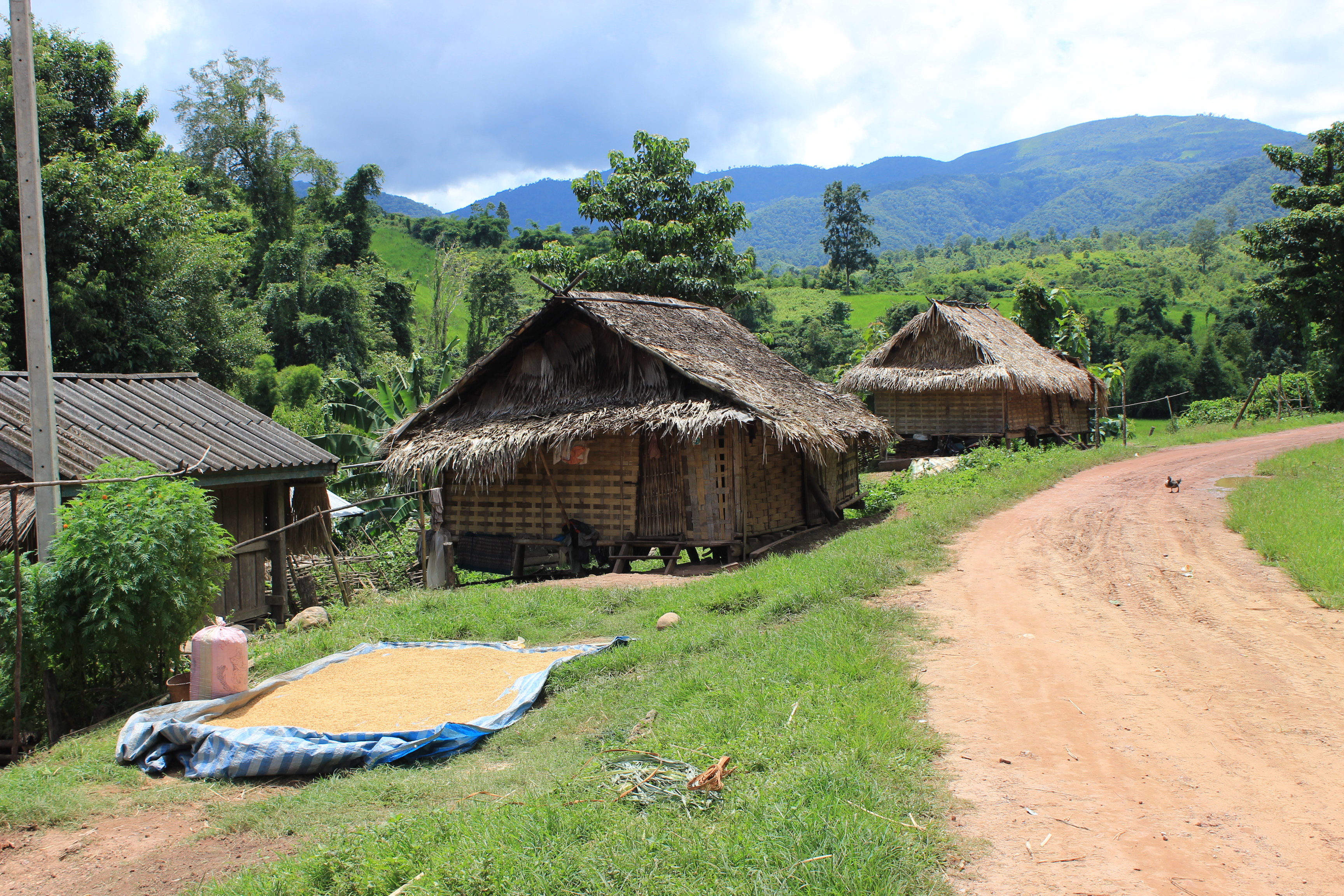 During the drive, men were carrying chopped off bamboo, children were playing and riding bike, youth were riding motorbikes, all ages sat around in the shade, women were walking with knives and sacks carried by their heads, rice and corn were lying out on tarps to dry. Mountains rose and fell, valleys laid stretched out below, clouds gathered and disbanded. The amazing scenery, the adventure and thrill, the people and small villages I passed, being out in the middle of absolutely nowhere on a God-forsaken road, these made it all worth it.